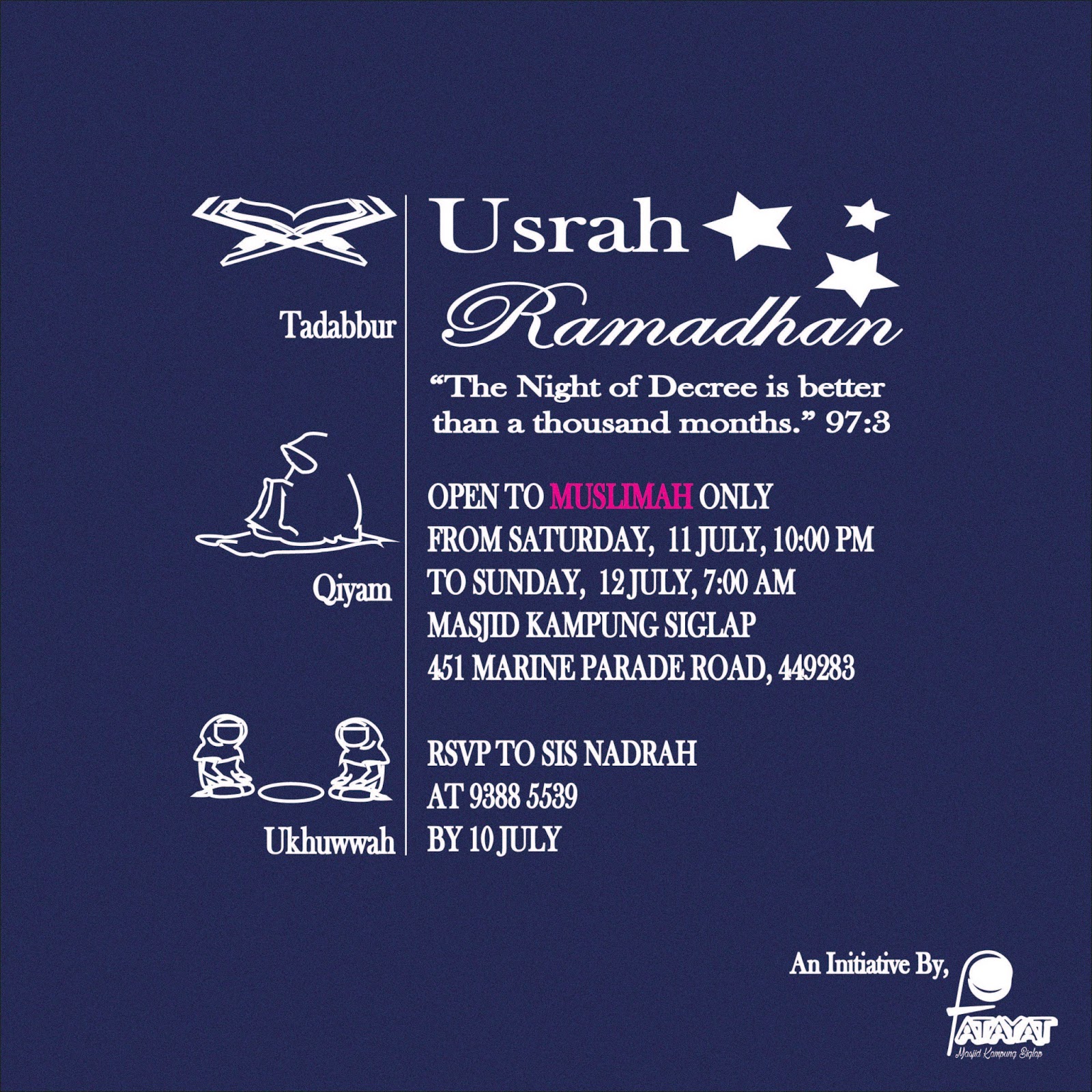 I am still far from being able to design templates and such. Well, as you can see, attached on this post is a practice done by yours truly for the upcoming Usrah! It is certainly not the official poster of the upcoming event, however, the information is legit. I am attending inshaAllah. Fathona, Iman, and whoever that is reading this, Let’s? 🙂