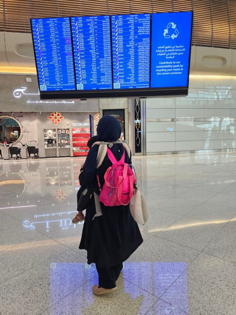 Travelling with 2 children to the blessed land with zauji is indeed one of the greatest blessing in my entire life. It’s been 24hrs + of travel mashaAllah. The little girl just turned 2 too. And that itself is a whole new phase that I am still learning to be more understanding about and to assist her in her transition. Ya Rabb, guide us.
